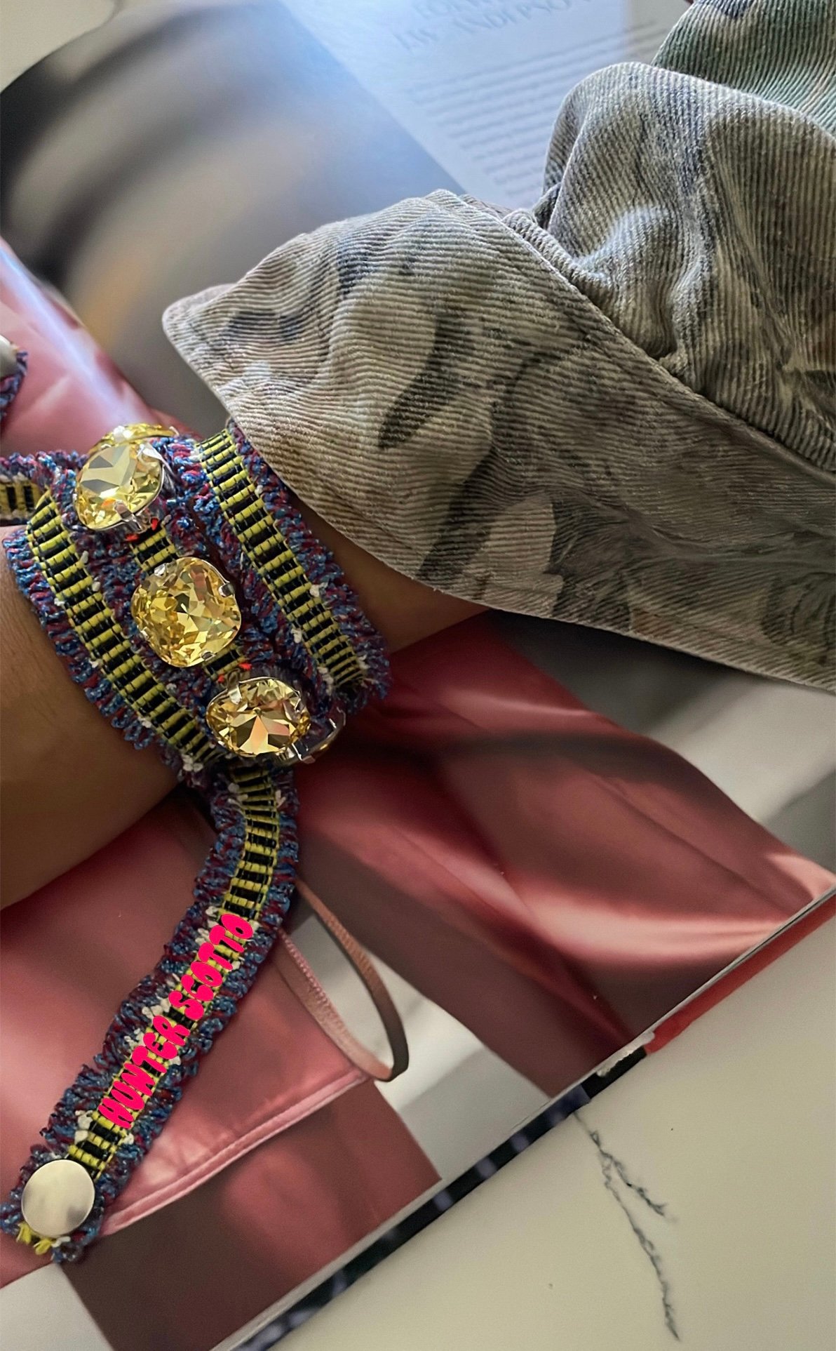 Swarovski 3D yellow embellishments hand-sewn